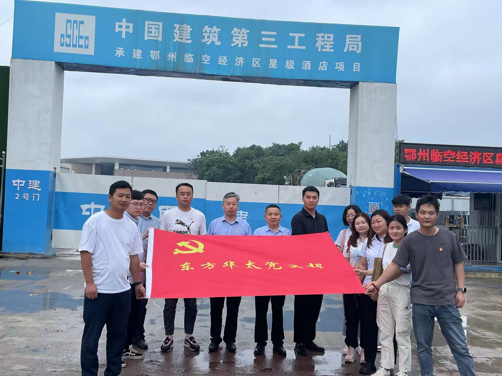 公司黨支部于2023年6月17日組織全體黨員、入黨積極分子及項目群眾代表等前往公司負責(zé)承監(jiān)的鄂州市臨空經(jīng)濟區(qū)星級酒店項目開展迎七一“學(xué)思想、強黨性、重實踐、建新功”主題教育與項目聯(lián)建活動。